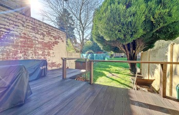 In de buurt van de Pagodes en kort bij al de faciliteiten, een charmante woning van 146m² in perfecte staat verdeeld zoals volgt ; op het gelijkvloers : een inkomhall met apart wc, een woonkamer, een superingerichte Amerikaanse keuken die uitgeeft op een aangenaam terras en een zuid georiënteerde tuin zonder inzicht. Op het eerste verdiep : een nachthall die uitgeeft op 2 slaapkamers , een bureau en bouckamer met lavabo en toilet. Op het tweede verdiep is er een slaapkamer met dressing en badkamer. Meer info 02 268 03 33